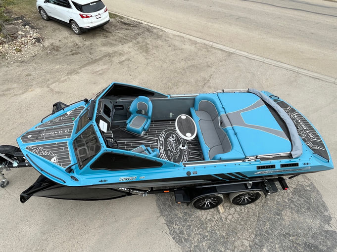 Fully loaded 2178 Convict with padded flush rear deck and straight curved rear bench seat coming down the line and available. 214 Hamilton paired with the mighty LSX454!!